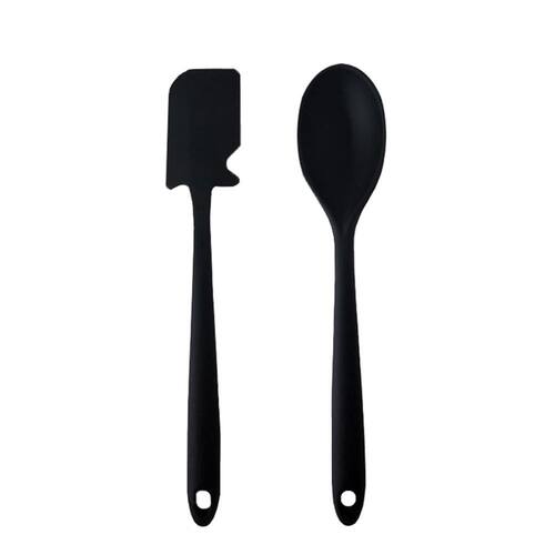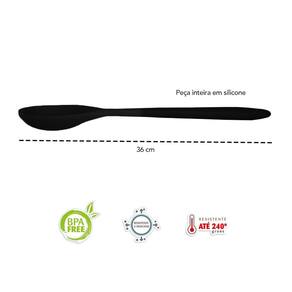 Colher e Espatula Profissional de Silicone. Espatula possui apoio que evita contato com a superficie e raspador de borda para melhor aproveitamento na hora de preparar sua receita. Resistente a manchas, suporta ate 240ºC e livre de Bisfenol A (BPA FREE). Contem: 1 Colher Profissional Dimensao: 36 x 7 cm 1 Espatula Profissional Dimensao: 36 x 6 cm Material: Silicone