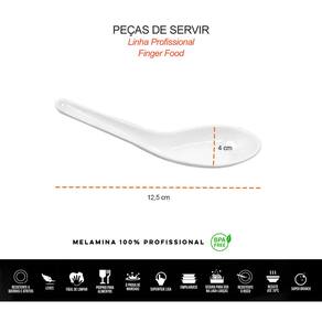 Contem: 5 Colheres Finger Food Medidas: 12,5 x 4 cm Peso: 15 gramas Material: 100% Melanina