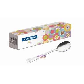 Um dos maiores desafios de uma criança é se alimentar sozinho, e a Colher Infantil Tramontina Baby em Aço Inox pode ajudar seu pequeno nesse processo.Totalmente feita de aço inox, não solta nenhum resíduo nos alimentos, trazendo qualidade e na hora da alimentação. O formato ergonômico, foi pensado especialmente para incentivar e auxiliar no desenvolvimento das crianças. E para deixar a colher mais charmosa e lúdica, possui desenho estampado em alto-relevo e acabamento em brilho, que chama a atenção para o alimento.
