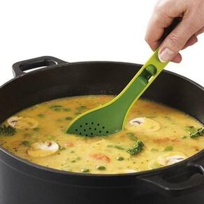 Além disso, a colher possui no cabo furos para facilitar a separação de folhas dos cabos em ervas frescas.