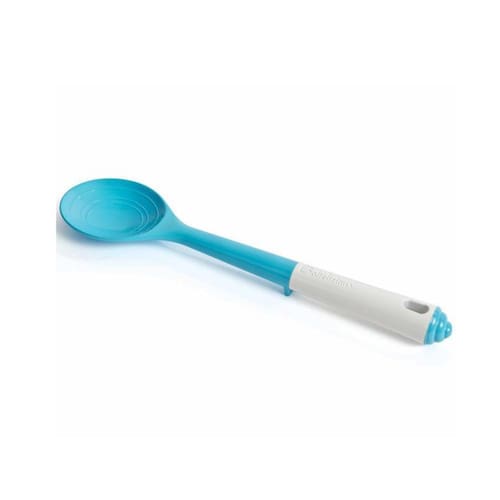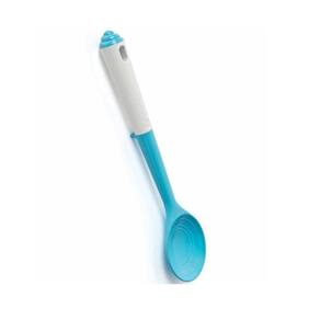 Possui um pé para que a colher possa ficar plana sem balançar ou derramar.