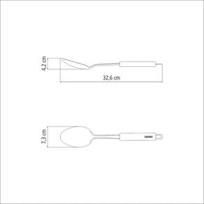 Para um arroz soltinho ou para aquele seu risoto favorito, aposte na Colher para Arroz Tramontina Marffim em Aço Inox. A peça oferece toda a praticidade e qualidade que você necessita para ter refeições ainda mais especiais. A peça é feita totalmente em aço inox, e por esse motivo, não solta nenhum resíduo nos seus alimentos, e o melhor de tudo é que você pode levar a peça diariamente ao lava-louças. A facilidade e qualidade que você precisava para o seu dia a dia! Totalmente feita de aço inox, por isso não solta nenhum resíduo nos alimentos, mantendo-os saudáveis. Altamente durável, mantém suas características originais, preservando a beleza, a higiene e a durabilidade do material. Pode ser lavada diariamente na máquina de lavar louças. Observações Use apenas sabão ou detergente e uma esponja macia. Outros tipos de produto como palha de aço, poderão riscar ou prejudicar o brilho da peça. Enxágue cada item a fim de remover totalmente os resíduos dos produtos de limpeza, que, por serem abrasivos, podem danificar o inox. Sempre que possível, use água quente, pois renova o brilho da peça. Após a lavagem, enxugue imediatamente a peça, caso contrário, as substâncias químicas da água (cloro) poderão causar manchas. Evite atrito entre as peças durante o processo de lavagem e no armazenamento, para mantê-la sem riscos. Evite o contato do produto com superfícies quentes, pois elas provocam a descoloração do material. Não guarde a peça em locais úmidos. A umidade também provoca manchas. Características Gerais EAN13 7891116157985 DUN14 17891116157982 NCM 8215.99.10 Peso Líquido 0,1070 kg. Peso Bruto 0,1300 kg. Metragem 0,001339 m³. Dimensões Embalagem (Compr. X Larg. X Alt.) 372x 80x 45 mm. Dimensões Produto (Compr. X Larg. X Alt.) 326x 73x 42 mm.