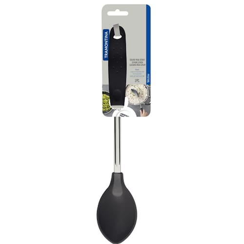 Colher para Arroz Tramontina Utilitá em Nylon com Cabo de Polipropileno Preto Sobre o produto Garanta a beleza da sua mesa e da sua cozinha com a colher para arroz Tramontina Utilitá em nylon com cabo de polipropileno preto. A linha Utilità traz os utensílios essenciais para quem busca ter uma cozinha completa, com peças de alta qualidade e que oferecem um visual diferenciado para o ambiente. Seu design moderno irá fazer sucesso em todas as ocasiões. A peça é produzida com bojo de Nylon que possibilita o uso em panelas com revestimentos antiaderentes e cerâmicos, além disso, possui haste de aço inox e cabo de polipropileno que garante um manuseio confortável e seguro. Sobre a Tramontina: