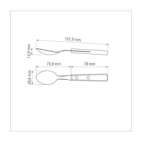 A lâmina de aço inox conta com maior espessura e uma estampagem do aço que garante maior resistência, evitando deformações. O cabo de madeira tratada Polywood é resistentes à impactos e altas temperaturas garantindo maior resistência e durabilidade. Rebites de alumínio. Pode ir à máquina de lavar louças facilitando seu dia a dia.
