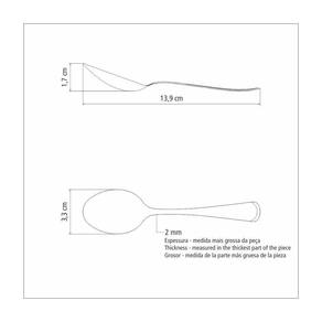 Colher com bojo em formato simétrico e bordas cuidadosamente arredondadas, proporcionando maior conforto no uso. Totalmente feita de aço inox, altamente durável, mantém suas características , preservando a beleza, a higiene e a durabilidade do material. Acabamento em alto brilho, com detalhes no cabo. Pode ser lavada diariamente na máquina de lavar louças.