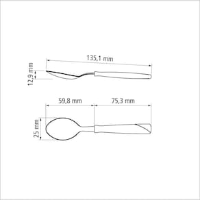 Se você quer praticidade e durabilidade, vai encontrar na Colher para Chá Tramontina New Kolor com Lâmina em Aço Inox e Cabo de Polipropileno Azul. A peça oferece alta resistência e muita qualidade, pois possui lâmina em aço inox e cabo de polipropileno que proporciona mais facilidade durante a utilização, já que seu formato anatômico permite um encaixe perfeito à mão. E para lavar, leve diariamente ao lava-louças. Orientações A lâmina de aço inox garante maior resistência devido a espessura do aço e a estampagem da lâmina. O cabo de polipropileno possui maior resistência e durabilidade. Pode ir à máquina de lavar louças facilitando seu dia a dia. Observações Antes da primeira utilização, lave bem a peça e seque-a.Produto cortante e perfurante: tenha cuidado ao manusear e mantenha fora do alcance das crianças.Para maior durabilidade do produto recomenda-se secar bem antes de guardar, mesmo após lavagem em máquina. Para descarte do produto e embalagem siga as orientações de reciclagem vigentes. Características Gerais EAN13 7891112057166 DUN14 17891112057163 NCM 8215.99.10 Peso Líquido 0,0107 kg. Peso Bruto 0,0107 kg. Metragem 0,000051 m³. Dimensões Embalagem (Compr. X Larg. X Alt.) 135x 25x 15 mm. Cor 1 041E42 Hexa