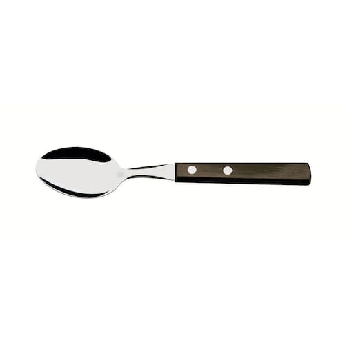 A Colher para Sobremesa Tramontina com Lâmina em Aço Inox e Cabo em Madeira Polywood Castanho é a escolha perfeita para se deliciar com seu doce preferido! A peça é produzida com lâmina em aço inox e cabo em madeira tratada Polywood, características que proporcionam mais qualidade e durabilidade, além de contar com um brilho que deixará suas refeições mais encantadoras. Beleza e qualidade é com a Tramontina! Orientações A lâmina de aço inox conta com maior espessura e uma estampagem do aço que garante maior resistência, evitando deformações. O cabo de madeira tratada Polywood é resistentes à impactos e altas temperaturas garantindo maior resistência e durabilidade. Rebites de alumínio. Pode ir à máquina de lavar louças facilitando seu dia a dia. Características Gerais EAN13 7891112108219 DUN14 17891112108216 NCM 8215.99.10 Peso Líquido 0,0280 kg. Peso Bruto 0,0280 kg. Metragem 0,000081 m³. Dimensões Embalagem (Compr. X Larg. X Alt.) 171x 34x 14 mm. Cor 1 4E6329 Hexa Observações Antes da primeira utilização, lave bem a peças e seque-a. Produto cortante e perfurante: tenha cuidado ao manusear e mantenha fora do alcance das crianças.Para maior durabilidade do produto recomenda-se secar bem antes de guardar, mesmo após lavagem em máquina. Para descarte do produto e embalagens siga as orientações de reciclagem vigentes.