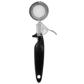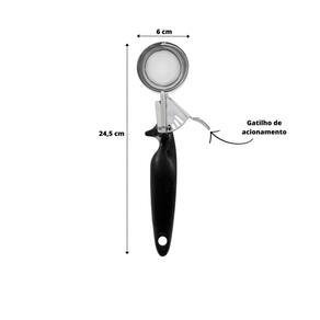 Colher ejetora de sorvete em inox é um utensílio projetado especificamente para facilitar o processo de servir sorvete de maneira rápida e eficiente. Feita de aço inoxidável de alta qualidade o inox é conhecido por sua durabilidade, resistência à corrosão e fácil limpeza, além de ser seguro para uso alimentar. A colher possui um mecanismo de ejeção no cabo, que permite liberar facilmente o sorvete da colher com um simples apertar de botão ou alavanca. Esse mecanismo ajuda a moldar e soltar o sorvete de maneira uniforme e sem esforço, facilitando a criação de bolas perfeitamente formadas.