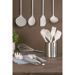 Descrição 1000 caracteres - Se você gosta de utensílios domésticos de qualidade certamente não dispensa um bom conjunto de panelas. Entre as alternativas estão as panelas antiaderentes, como as diferentes opções de modelos da Brinox com antiaderência Pro-flon e Pro Ceramic.Porém, para desfrutar dessas panelas sem causar danos à superfície interna e prejudicar o revestimento antiaderente é preciso usar utensílios adequados. Nesse quesito, a Colher de Silicone da Linha Flex/Brinox é a mais indicada. O conjunto inclui itens como colheres, concha e pegadores, entre outros. Esta Colher de Silicone da Linha Flex é fabricada na cor Vanilla, tem 27,5 cm de comprimento. Além de ser fácil de limpar, pode ser levada à lava-louças. Ela não danifica revestimentos antiaderentes e suporta temperaturas de até 200C.A Colher de Silicone da Linha Flex faz parte do conjunto de utilidades domésticas da Brinox. São itens para o dia a dia e para ocasiões especiais. Acesse o site e conheça nossa linha completa de produtos.