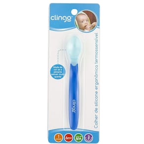 A Colher de Silicone Ergo, além de mudar de cor quando o alimento estiver muito quente, ajuda a criança a comer sozinha com facilidade e segurança.