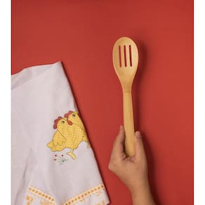 Essa é a colher vazada de bambu 30cm da MOZCADA.:: Prática: pra pegar salada, pra escoar legumes, ou tirar itens de molho e o que mais você quiser:: Durável e higiênica: o bambu é um material resistente e com propriedades que evitam a proliferação de bactérias. :: Decorativa: o bambu natural traz beleza e personalidade pra sua casa. Marca: Mozcada