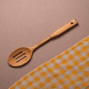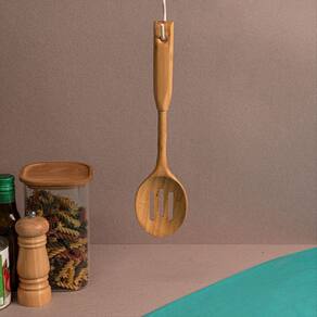 Essa é a colher vazada de bambu 35cm da OIKOS. Funcional muito boa para servir e preparar suas refeições preferidas, facilitando a rotina da cozinha. Versátil ideal para servir arroz, cuscuz, bolinhos e croquetes, batatas fritas, pastéis e mais! Design Ergonômico o formato da colher foi pensado para proporcionar mais precisão e conforto ao manusear. Decorativo o Design atemporal e o tom natural combinam com diversas decorações, deixando a bancada, a cozinha e até a mesa mais charmosa e convidativa. feito de bambu Material leve, resistente e ecologicamente correto. Durável e higiênica o bambu é resistente e tem propriedades que evitam a proliferação de bactérias, assim como o mármore. só precisa lavar e secar de acordo com as recomendações, combinado?