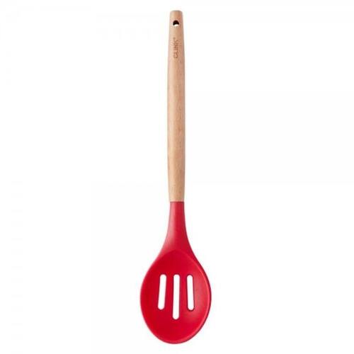 - 01- Colher Vazada De Silicone com Cabo Madeira 32 cm - Clink