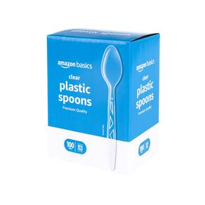 Amazon Basics Colheres descartáveis de plástico transparente, qualidade premium, 100 unidades, pacote grande - Colheres de plástico transparente de qualidade premium que permanecem fortes com cada colher - Inclui 100 colheres com um design elegante recortado - Colheres de uso único para facilitar a limpeza - Ideal para comer cereais saborosos, iogurte, aveia, creme de milho e muito mais - Perfeito para todos os tipos de reuniões grandes, como festas casuais, churrascos de verão e festas de bairro - Ótimo para uso diário, seja purê de batatas caseiro ou almoços preparados para refeições - Feito de plástico de qualidade alimentar - Feito sem BPA
