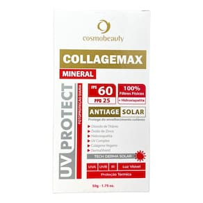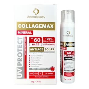 Collagemax Mineral é um concentrado multiprotetor facial composto por ingredientes físicos que protegem a pele dos danos solares que danificam e causam envelhecimento precoce. Sua fórmulação inovadora, associa Dióxido de Titânio, Óxido de Zinco e Hidroxiapatita, um mineral biocompatível que fornece um aumento na proteção sem a adição de agentes químicos. Possui ingredientes que retardam o envelhecimento e nutrem a pele.Benefícios e característicasAntienvelhecimentoAlta ProteçãoNutritivoFiltro Solar FísicoAntiageProteção térmicaHipoalergênicoDermatologicamente testadoAtivosDióxido de TitâneoÓxido de ZincoHidroxiapatitaUV ComplexColágeno VeganoDermashieldModo de usoAplicar em toda a face o Collagemax Mineral UV Protect, e, massagear até completa absorção. Reaplicar sempre que desejar