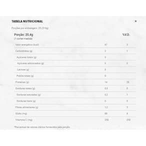 Além da proteína, adicionamos a vitamina c, que auxilia na formação do colágeno e também no metabolismo de proteínas e gorduras.