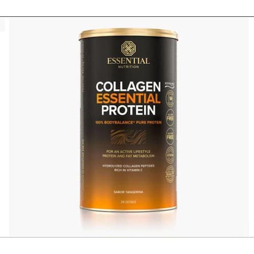 Collagen essential protein tangerina lata 432,5g essential Ingredientes Colágeno hidrolisado em peptídeos bodybalance , ascorbato de sódio, urucum, aroma idêntico ao natural, antioxidante ácido cítrico, edulcorante glicosídeos de esteviol estévia e antiumectante dióxido de silício.