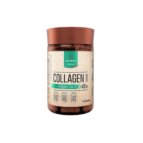 O Collagen Ii, 40mg, da Nutrify, é um suplemento em cápsulas de peptídeos de colágeno Ii, um tipo de colágeno encontrado em maior quantidade nas cartilagens das articulações. Contém ainda adição de vitaminas, como vitamina C, E e algumas vitaminas do complexo B, como vitamina B1, B3, B6 e B12.