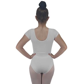O collant Tatiana, fabricado em poliamida e elastano, se ajusta muito bem ao corpo, proporcionando muito conforto durante os exercícios. Possui manga curta e recorte em U, com cava na parte das costas.