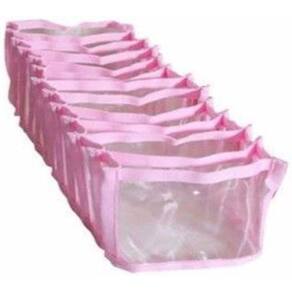 Organizador de Gavetas Transparente Ideal para meias, calcinhas, cuecas, meias, sapatinhos de bebe, chaves. Contém: 11 nichos em cada organizador Características Material: PVC transparente com viés Rosa Características Gerais Cor: Transparente com viés Rosa Medidas: 8,5 L x10 A x35 C cm Marca: VB Home Contém 1 unidade Ean: 7898417716040