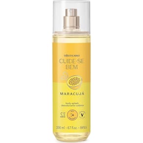 Colônia body splash cuide-se bem feira maracujá 200ml o boticário Body splash colônia cuide-se bem feira maracujá 200ml Com cuide-se bem feira, a feira é diferente, está em toda parte, vai com você aonde você for, no dia e na hora que você quiser Com uma fragrância aconchegante e deliciosa, este body splash vai manter sua pele perfumada e refrescada para enfrentar a rotina. Vegano e com 90% de ingredientes naturais, o body splash de cuide-se bem feira traz cuidado com você e com o planeta. Para uma rotina mais prática, leve e sustentável, o body splash desodorante colônia cuide-se bem feira maracujá traz a diversidade de uma feira para você se cuidar Sobre cuide-se bem feira: A linha cuide-se bem feira traz uma variedade de frutas, cores e texturas para você aproveitar uma feira deliciosa e 100% vegana. Com diversas fragrâncias e nova fórmula mais hidratante, você tem uma mistura de deliciosas vantagens. Produto não comestível. Nenhum produto do boticário é testado em animais, ou seja, este item possui selo cruelty free.