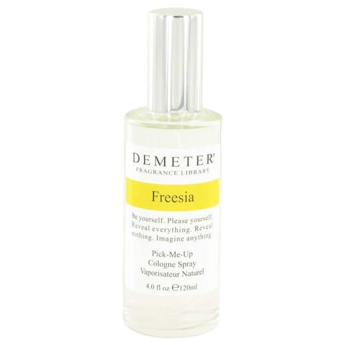 Demeter Freesia Perfume por Demeter, frésia Demeter é uma fragrância floral para mulheres com um aroma refrescante característico. À semelhança de outros lançamentos de Demeter, este perfumeâ s perfil aromático é composto de uma única nota. Freesiaâ s distintivo aroma verde e apimentado tornou a inclusão valorizada em muitas fragrâncias, mas também dá esta mistura uma encantadora e delicada beleza.