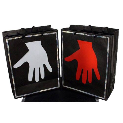 O mágico mostra uma sacola comum completamente vazia. Na parte externa contém a estampa do formato de uma mão nas cores branca e vermelha. O ilusionista está usando luvas pretas, ao encostar a mão dentro da sacola as luvas mudam de cor num piscar de olhos No final as luvas brancas são colocadas dentro da sacola e são transformadas em um lindo pombo Se você não trabalha com pombos, pode produzir canudo gigante, lenços, buquê de flores de flor mecânica, etc. A sacola pode ser fechada normalmente para transporte. Efeito fantástico e de alto impacto que não pode faltar no seu repertório