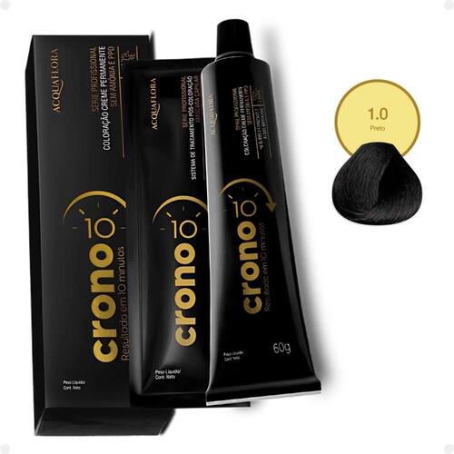 Coloração Creme Permanente Acquaflora Crono 10 minutos 1.0 Preto 60g