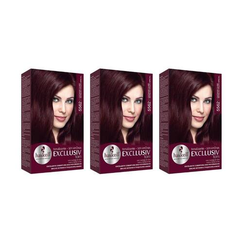 Descrição do produto O tonalizante excllusiv tom haskell colore os cabelos, proporcionando brilho, cor intensa e excelente cobertura dos fios brancos. A formulação do sistema de tonalizantes excllusiv tom haskell contém manteiga de oliva e pigmentos de alta qualidade. O resultado são fios brilhantes, reluzentes e macios, com durabilidade prolongada da vivacidade do tom. Por não conter amônia em sua composição, o tonalizante excllusiv tom haskell pode ser aplicado em cabelos naturais, coloridos, descoloridos, alisados, relaxados ou com escovas progressivas. Recomenda-se não fazer um processo químico imediatamente antes ou após o uso do tonalizante.