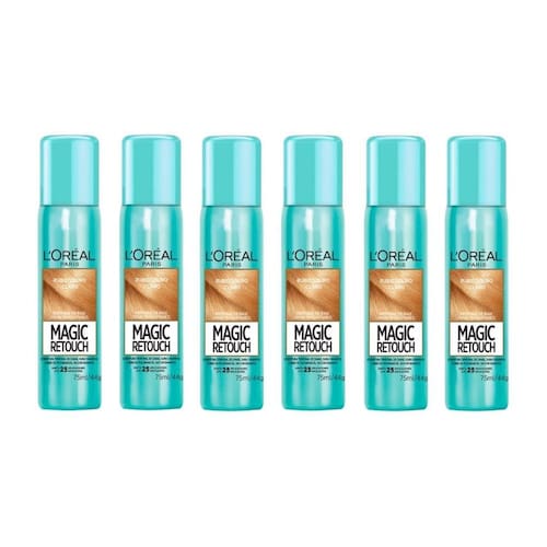 Descrição O corretivo instantâneo Magic Retouch é um spray que cobre as raízes brancas em apenas 3 segundos. O corretivo instantâneo Magic Retouch de L'Oréal Paris possui 75 ml, é uma maquiagem para cabelo, retoque de raiz, spray instantâneo e cobre temporariamente os fios brancos. Sai com shampoo, dura até 25 aplicações, retoca a raiz e é um pray instântaneo. São 5 tonalidades, escolha aquela que mais se adequa a cor dos seus fios, e fique com cabelo incrível e renovado em apenas alguns segundos Indicado: Para cabelos normais.