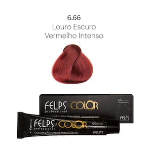 Coloração Profissional Felps Color Louro Escuro Vermelho Intenso 6.66 - 60g