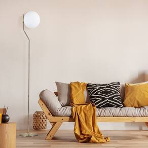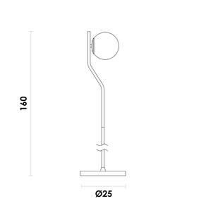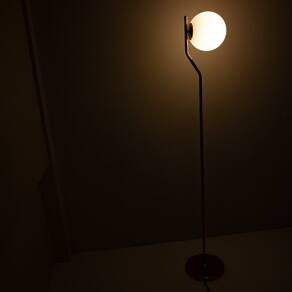 O design se destaca pela combinação de cores clássicas: o acabamento Dourado vibrante da base adiciona um toque de luxo e modernidade, enquanto a cúpula Branca proporciona uma luz suave e agradável, ideal para momentos de relaxamento. Com 25 cm de diâmetro e 160 cm de altura, ela se posiciona como um ponto de luz e um elemento decorativo marcante.