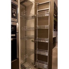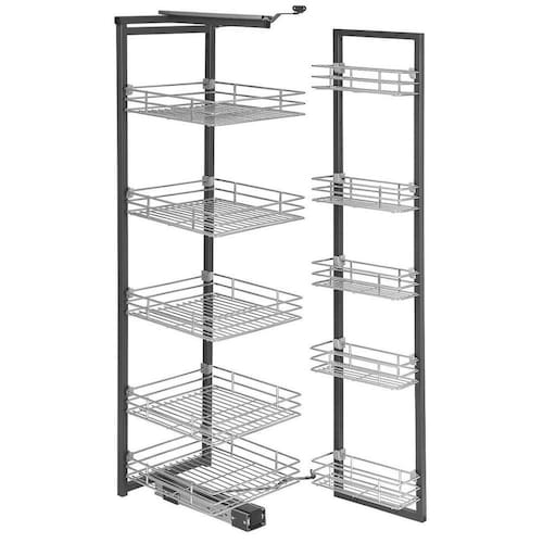 Garantia: 90 dias / Peso: 18,245kg / Cor predominante: cromado / Referência: 7898417091864 Dimensões montado: 38cm (C) x 36cm (L) x 175cm (A); Nicho para embutir: 40cm (C) x 55cm (L) x 178cm (A); Dimensões cesto grande: 33cm (C) x 33cm (L) x 6cm (A); Capacidade suportada pelo cesto grande: 10Kg; Quantidade de cestos grandes: 5 unidades; Dimensões cesto pequeno: 30cm (C) x 10cm (L) x 6,5cm (A); Quantidade de cestos pequenos: 5 unidades; Capacidade suportada pelo cesto pequeno: 5Kg; Dimensões das corrediças abertas: 73cm; Dimensões das corrediças fechadas: 35cm; Materiais: aço cromado e aço galvanizado.