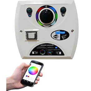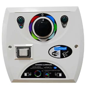 Opções de trocar as cores da iluminação da piscina, escolher entre uma das várias programações pré-definidas ou escolher a função musical, onde os leds acompanham e piscam de acordo com uma música ambiente ou música que esteja tocando no seu celular