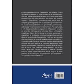 O livro Comandos Elétricos: Fundamentos para o Ensino Técnico apresenta inicialmente os aspectos básicos de motores elétricos, com ênfase nos motores de indução trifásicos, hoje extremamente aplicados nos processos industriais. No primeiro capítulo, é apresentada a operação do motor, sob o efeito do campo magnético girante, com equações e diagramas fasoriais. Os seus diversos parâmetros são apresentados, como o conjugado e as principais características nominais. Nos capítulos 2, 3 e 4, são apresentados os dispositivos utilizados em circuitos de comandos elétricos, como botoeiras, chaves seletoras/comutadoras, chaves de fim-de-curso, chaves seccionadoras, dispositivos de sinalização, contatores e dispositivos de proteção e de temporização. Nos capítulos 5 e 6, são apresentados diversos circuitos de comando para os motores monofásicos e trifásicos, respectivamente. No último capítulo, são destacadas algumas aplicações básicas de comandos elétricos em baixa tensão. O livro traz em cada capítulo algumas séries de exercícios de fixação e são sugeridas simulações com o uso do aplicativo CADe Simu, bastante difundido na área de Comandos Elétricos. Outra contribuição desta obra é um guia de aulas práticas, muito úteis para os professores que ministram a disciplina de Comandos Elétricos.
