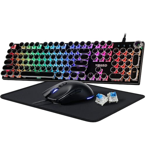 Teclado mecânico RGB premium com iluminação de fundo personalizável para jogadores e datilógrafos Libere todo o seu potencial de jogo com nosso teclado mecânico RGB de última geração, construído para alto desempenho e otimizado para atender às necessidades de jogadores, streamers e profissionais. Projetado com precisão e projetado para oferecer confiabilidade, este teclado para jogos é ideal para quem busca uma experiência de digitação ou jogo perfeita, rápida e responsiva . Desempenho máximo em jogos Nosso teclado mecânico RGB para jogos possui interruptores táteis avançados que fornecem pressionamentos de tecla ultraprecisos, tornando cada entrada mais suave e precisa. Cada tecla é equipada com tecnologia anti-fantasma, portanto, vários pressionamentos simultâneos de tecla são registrados perfeitamente, perfeitos para jogos em ritmo acelerado. O teclado anti-fantasma e os recursos de substituição de teclas n oferecem uma vantagem competitiva, especialmente em jogos exigentes como FPS, MOBA ou MMOs. Iluminação de fundo RGB impressionante com 16,8 milhões de cores Dê vida à sua configuração com uma iluminação de fundo RGB brilhante e personalizável. A iluminação RGB programável permite criar padrões de cores exclusivos e sincronizá-los com seu jogo ou ambiente. Escolha entre vários modos de iluminação predefinidos ou personalize a cor de cada tecla. A luz de fundo personalizável foi projetada para reduzir o cansaço visual durante longas sessões de jogo e garantir uma experiência imersiva mesmo em ambientes com pouca luz. Ergonomia e durabilidade combinadas Este teclado ergonômico para jogos foi desenvolvido para suportar horas de uso, seja para jogos intensivos ou longas sessões de trabalho. O design compacto se encaixa facilmente em qualquer espaço de trabalho, mas não compromete o conforto ou a durabilidade. As teclas ABS duráveis são resistentes ao desbotamento, projetadas para manter sua qualidade e clareza mesmo após uso extensivo. Características que você vai adorar: Full Key Anti-Ghosting: registre várias teclas pressionadas sem atraso na entrada. Design de teclado compacto: ideal para maximizar o espaço na mesa. Teclas multimídia dedicadas: controle facilmente sua mídia sem interromper o jogo. Estrutura de alumínio durável: resiste até às sessões de jogo mais intensas. Inclinação ajustável: configure seu teclado no ângulo mais confortável para você. Perfeito para jogadores e profissionais Seja você um jogador incondicional ou um profissional que procura um teclado confiável e de alto desempenho, este teclado mecânico RGB oferece uma experiência excepcional adaptada às suas necessidades. Ele foi projetado para maximizar a produtividade durante o horário de trabalho e fornecer respostas precisas e rápidas para sessões de jogo após o expediente . Melhore sua configuração com um teclado mecânico que combina visuais incríveis com desempenho incomparável. Perfeito como presente para jogadores, programadores e qualquer pessoa que valorize a qualidade e a personalização em suas ferramentas, este teclado mecânico para jogos é o acessório definitivo para elevar sua experiência. - Combinação de teclado mecânico e mouse/pad RGB: a iluminação RGB programável permite que você crie uma luz de fundo personalizada exclusiva conforme necessário. O mouse para jogos incluído oferece 4 configurações de DPI ajustáveis (1200/2400/4800/7200) e 4 luzes de respiração coloridas com um design ergonômico, garantindo precisão e conforto durante sessões de jogo intensas. - Botão de controle de multimídia e luz de fundo: o teclado mecânico com fio para máquina de escrever retrô VMUND K968 em tamanho real inclui um versátil botão de controle de mídia, permitindo que você ajuste facilmente o volume, controle a reprodução e alterne entre 22 efeitos de iluminação dinâmicos sem interromper seu jogo ou fluxo de trabalho. - Interruptores azuis anti-fantasmas de 108 teclas: o teclado mecânico RGB para jogos possui interruptores azuis avançados que soam como um clique audível e fornecem pressionamentos de tecla ultraprecisos, tornando cada entrada mais suave e precisa. Cada tecla é equipada com tecnologia anti-fantasma, portanto, vários pressionamentos de tecla simultâneos são registrados sem falhas. Perfeito para jogos em ritmo acelerado. - Painel de metal e excelente qualidade: feito de liga de alumínio premium com uma textura fosca elegante, o teclado mecânico possui teclas ABS moldadas por injeção de duas cores que são duráveis e resistentes ao desbotamento. As teclas podem ser facilmente removidas para limpeza e manutenção, garantindo um desempenho duradouro. - O que você obtém: teclado mecânico com fio VMUND K968, um mouse DPI ajustável, um mouse pad, 2 interruptores mecânicos de substituição, um extrator de interruptores de teclado, garantia de 12 meses.