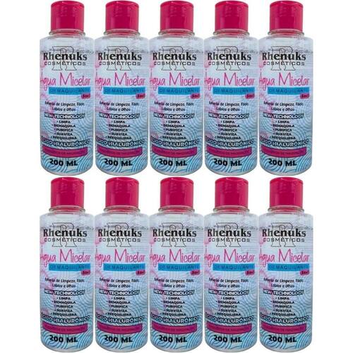 Combo 10 Água Micelar Demaquilante C Ácido Hialurônico 200ml Água Micelar Demaquilante 5 em 1 Limpa Demaquila 200ml Suave