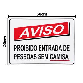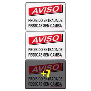 Neste Kit contém 10 unidades de placas com a escrita "Aviso Proibido Entrada De Pessoas Sem Camisa".