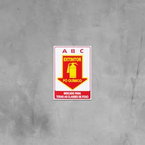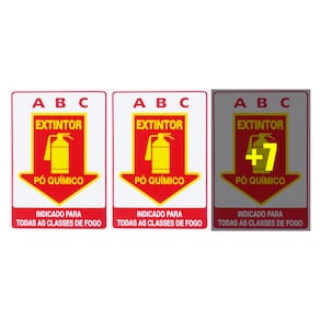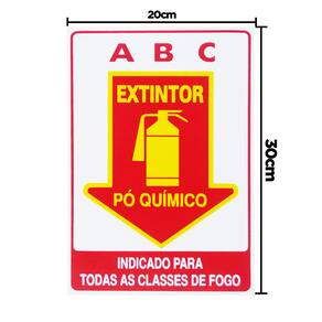 Neste Kit contém 10 unidades de placas com a escrita "Extintor ABC Pó Químico, Indicado Para Todas As Classes De Fogo".