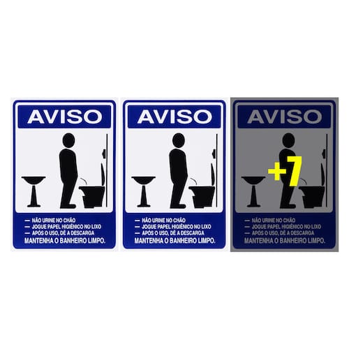 Neste Kit contém 10 unidades de placas com a escrita "Aviso Mantenha O Banheiro Limpo Masculino".