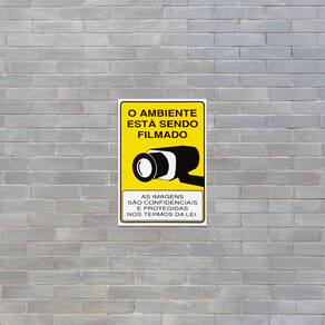 Neste Kit contém 10 unidades de placas com a escrita "O Ambiente Está Sendo Filmado. As Imagens São Confidenciais E Protegidas Nos Termos Da Lei".