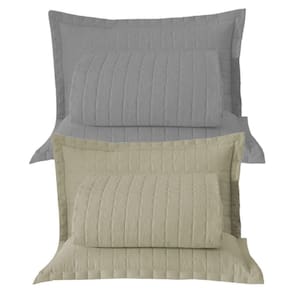 Combo 2 Kit Cobre Leito Colcha Monaco Queen Dupla Face - Cinza - Cáqui