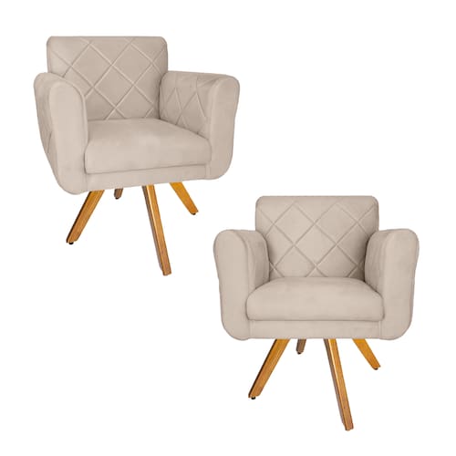 Combo 2 Poltrona Estofada Base Giratória De Madeira Clínica Isabella Suede Bege - LM DECOR