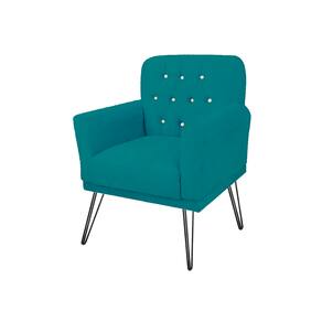Combo 2 Poltronas Decorativa Para Quarto Closet Pés de Ferro Anitta Suede Azul Turquesa - LM DECOR