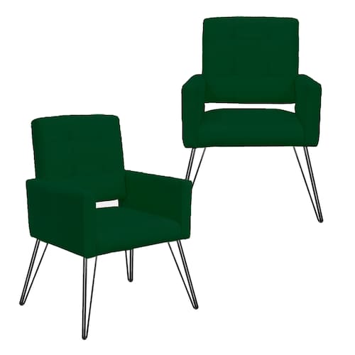Combo 2 Poltronas Decorativas Para Escritório Pés de Ferro Camila Suede Verde - LM DECOR