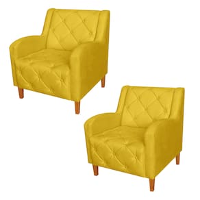 Combo 2 Poltronas Estofadas Para Hall de Entrada Munique Suede Amarelo - LM DECOR