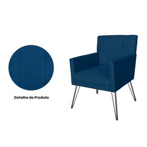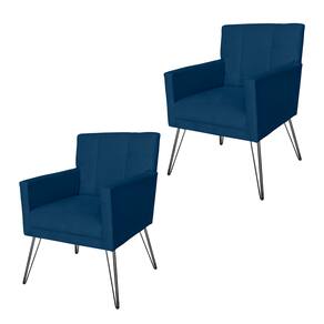 Combo 2 Poltronas Estofadas Para Recepção Pés de Ferro Onix Suede Azul Marinho - LM DECOR