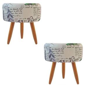 Combo 2 Puffs Decorativos Redondo Pé Palito-suede Paris Azul Verde