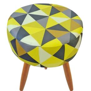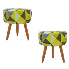 Combo 2 Puffs Decorativos Redondo Pé Palito-tecido Trianglo Amarelo