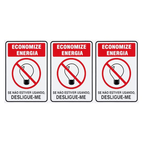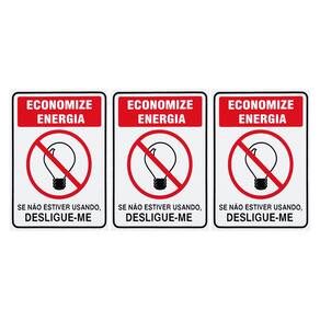 Neste Kit contém 3 unidades de placas com a escrita "Economize Energia Se Não Estiver Usando, Desligue-me".